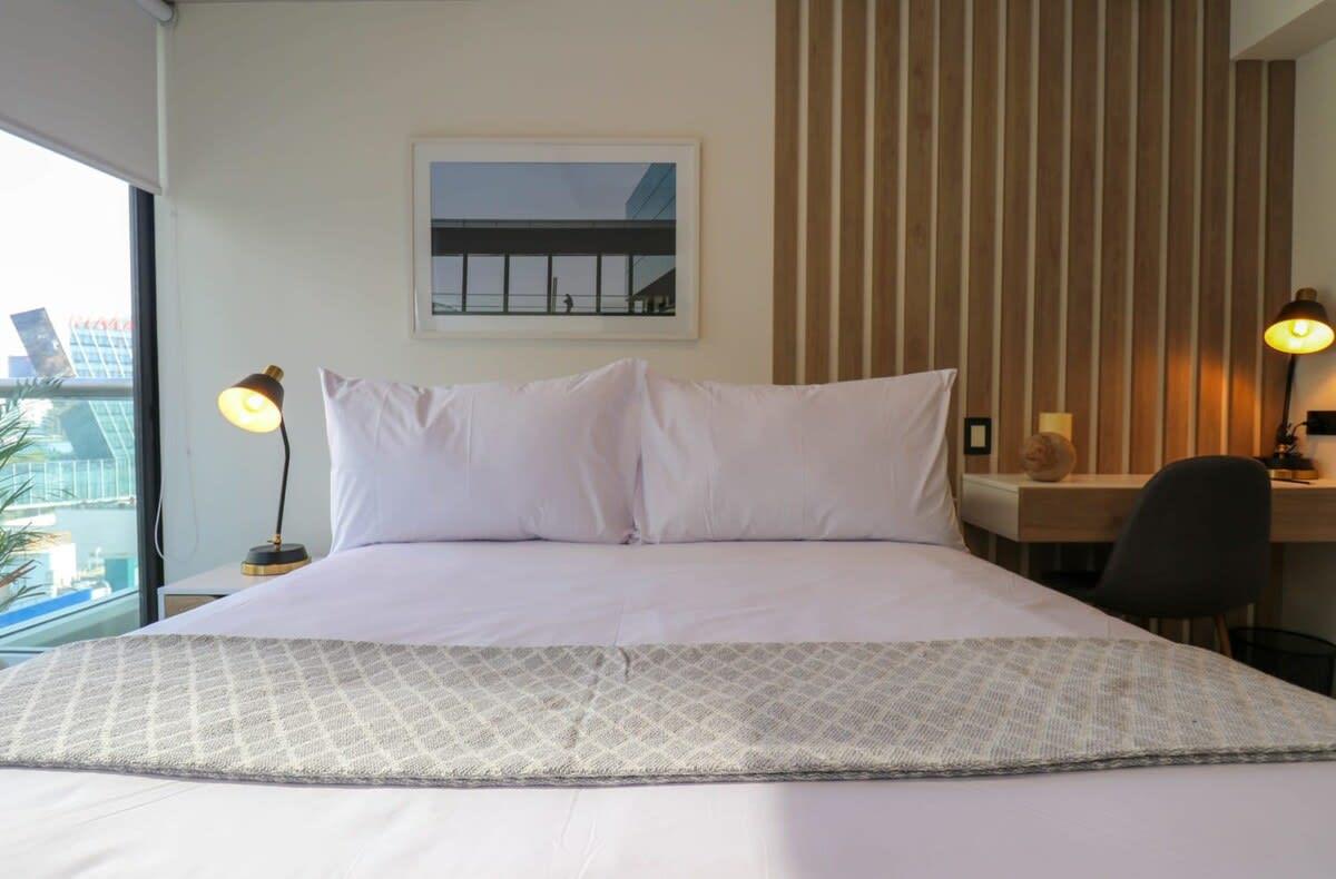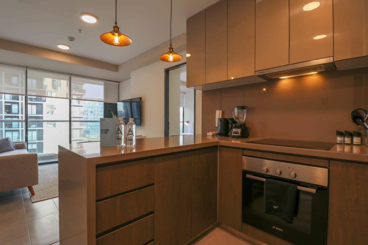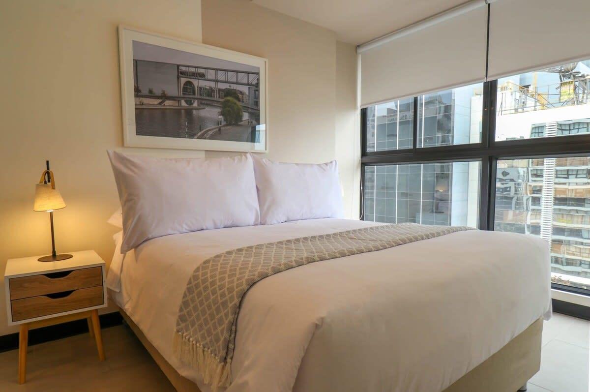 Located in the heart of the Financial and Business district of San Isidro, this beautiful apartment features hotel quality queen size bedding accommodations, as well as a comfortable living room, and a modern smart TV which includes on-demand Star+ Streaming Services. In the immediate area surrounding the property you will find top notch restaurants recommended by international critics and locals such as Maras (International Fusion); San Ceferino (Pastas & Italian); Starbucks (Coffeeshop); Astrid & Gastón (Peruvian Fusioned with International); Osteria Convivium (Pastas & Italian); Celeste Solar Bar (Rooftop Bar), and Baan (Asian-Thai Fusion).