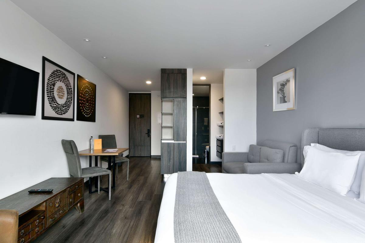 This apartment is in an Aparthotel multiunit listing, pictures are a reference. The actual apartment might be in a different floor or have a different view. Located in the best area of Bogotá. Ideal for business trips, families and groups of friends who want to stay in a spacious modern loft.