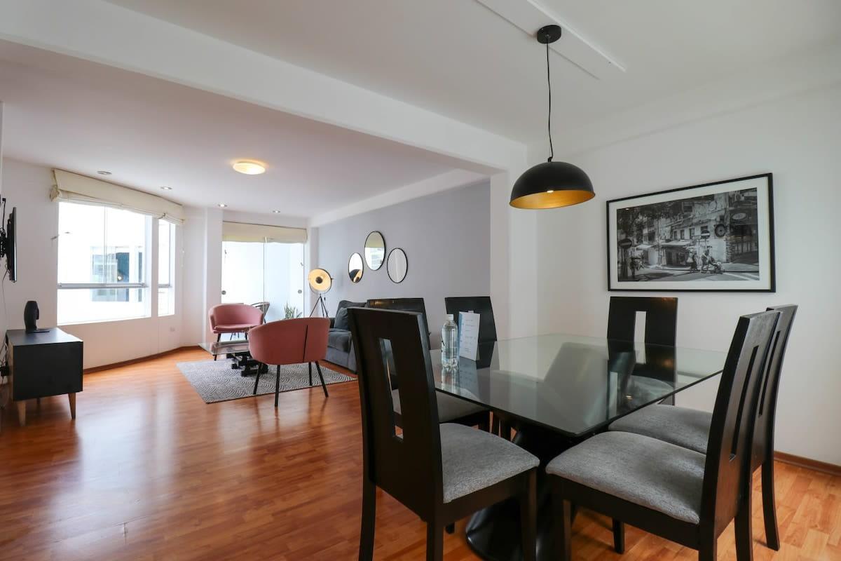 Stay in a spacious and modern 3-bedroom apartment, fully equipped to make you feel at home while exploring the best of Lima. Located in the heart of Barranco, Lima’s most bohemian and artistic district, you’ll be surrounded by charming colonial houses, colorful street art, lively bars, and breathtaking ocean views. Just a short walk away, you’ll discover world-renowned restaurants like Central, Merito, and Siete, seaside dining at Cala, and iconic spots like Ayahuasca Bar for an unforgettable night out. Plus, everything you need is within reach: cafés, convenience stores, supermarkets, and pharmacies are just around the corner. See “The Neighborhood” section for detailed information on restaurants, convenience stores and pharmacies nearby.