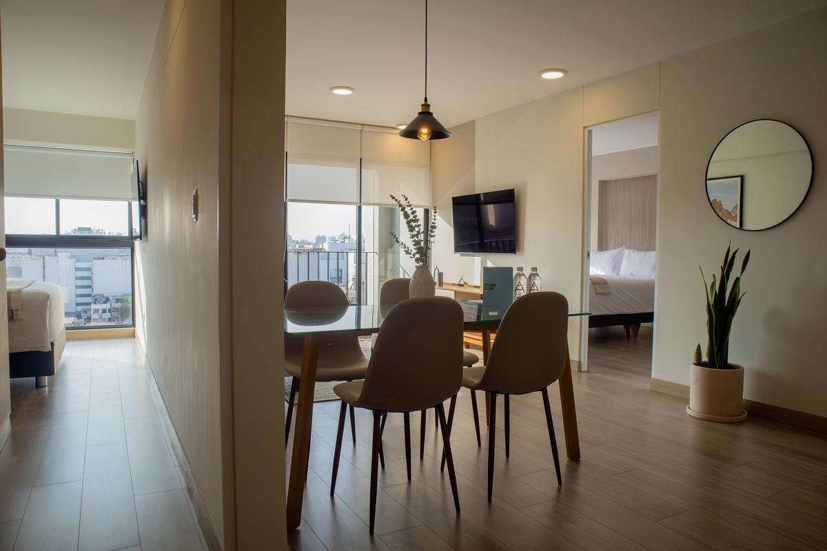 Located near the Malecón and the vibrant dining scene of Avenida La Mar in Miraflores, this apartment offers premium queen-size bedding and a comfortable living room equipped with a modern Smart TV. The walkable area is home to some of Lima's most popular restaurants, including Mattoni (Italian), La Mar (seafood), Don Nico Steakhouse, Burger Boy, and many others. The building also features a spectacular rooftop pool, perfect for relaxing and enjoying the views. Please note that there may be some noise during your stay due to nearby construction.